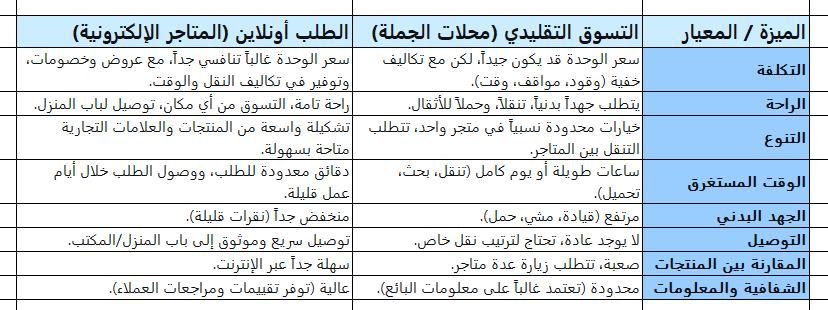 • خيارات محدودة أحياناً: على الرغم من وجود العديد من المتاجر، قد لا تجد جميع الأنواع أو العلامات التجارية التي تبحث عنها في مكان واحد، مما يضطرك للتنقل بين عدة مواقع.